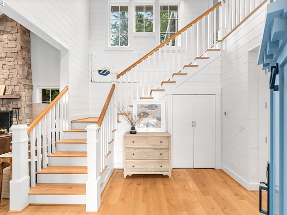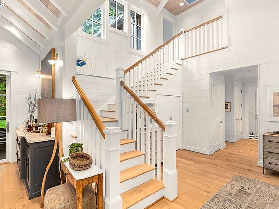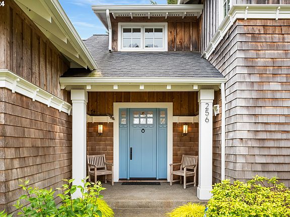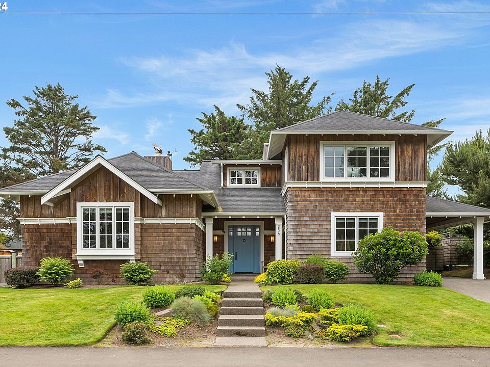 Welcome to your dream home in the heart of Gearhart! This quintessential coastal home offers 2,218 sq ft of spacious living, featuring 4 bedrooms and 4 bathrooms, 3 of which are ensuite bedrooms for ultimate privacy and comfort. Admire the stunning vaulted larch ceilings with exposed beams that add character and warmth throughout the home. The open-concept living creates a welcoming space perfect for gatherings, complemented by a well-appointed gourmet kitchen with a Viking Dual gas range, a built-in Liebherr refrigerator with a wine refrigerator, and a cozy dining nook. Enjoy the coastal air on the charming covered porch featuring a built-in exterior fireplace or in the beautifully landscaped yard, ideal for summer barbecues and outdoor relaxation. Situated about a block from the beach, this enchanting home combines classic coastal architecture with modern amenities. Don't miss the opportunity to experience the magic of Gearhart living in this true gem.