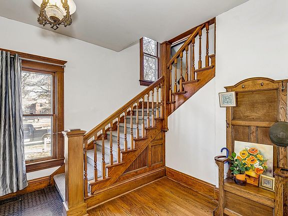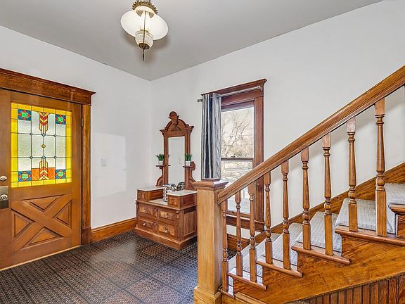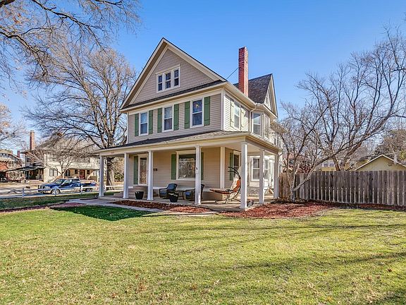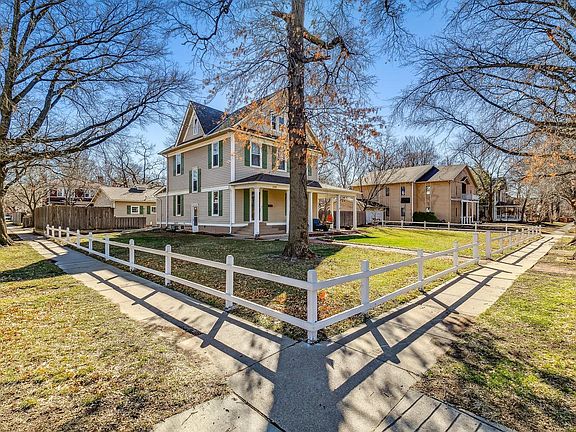 This charming home is in the heart of the desirable College Hill. As you drive up to the home you will love the original Coffeyville red paving stone street, corner lot with white double railed fence and wrap around porch. The paving stones lead up to the front door. As you enter the home you will be amazed at the beautiful, original woodwork, wood floors and stained-glass windows. The home has been so well maintained while retaining the character and detail. There are even 2 original light fixtures with the date 1870 stamped on one of them. The living room has a decorative fireplace and large, beautiful windows. There is a wonderful dining room with French doors. The kitchen has been updated and has quartz counters, stainless steel appliances that remain and a walk-in pantry. The spacious family room is adjacent to the kitchen with lots of windows letting in natural light. There is a main floor laundry room and a main floor bathroom. Upstairs are 4 large bedrooms and 2 full bathrooms that are both updated. The master bedroom is huge with plenty of room for a king size bed. There is also a stairway that leads to an attic that has the potential to be finished for a great bonus room. This home has so much space for the whole family. The backyard is enclosed with a deck and a sports court for the kids to enjoy. There is a detached 2 car garage also in the back of the home. The area is surrounded by mature trees offering wonderful shade. This home is a jewel and is completely move in ready.