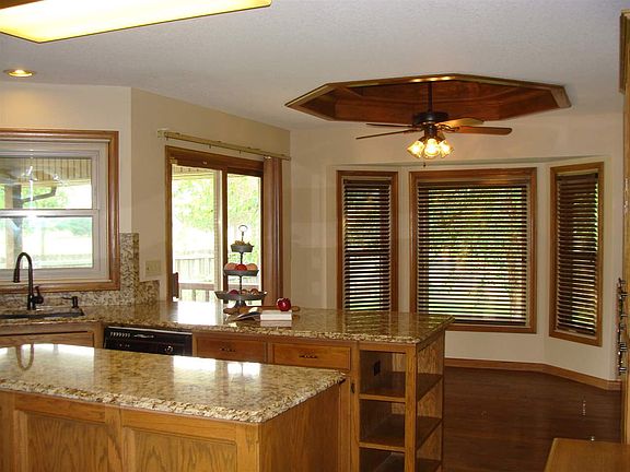 Gorgeous home! Great location! Low maintenance with all updated inside and out with wind & hail resistant roof, siding, windows, heat, air, carpet, paint, lighting and plumbing fixtures. GARAGE IS HEATED for those car enthusiasts or hobbyists. Cooks and bakers will be delighted with the HUGE kitchen with beautiful hardwood floors, double deep sink, lots & lots of counter space with high quality granite on the counters, island and breakfast bar, built in desk and shelves with large built in pantry. The casual eating area in the kitchen has a bay window and gorgeous coffered ceiling detail. Sliding doors lead to the covered deck and fenced, treed and private backyard. Lot of space in the formal dining room with hardwood floors! Check out the great sized living room with fireplace. The master bedroom suite is truly like a hotel suite. Vaulted ceilings and connects to bath suite with wooden double doors. Bath also has vaulted ceilings, and is updated with tiled floor, separate shower and whirlpool tub and two sinks. The 2 bedrooms on the main level are great sized- one with a darling window seat with hinged storage. Family room in basement has a brick detailed fireplace with hearth and mantel, wet bar, and free standing bar with brass rail. The bedroom is being utilized as a pool table / rec room currently and the POOL TABLE & light STAY iwth acceptable offer! Enjoy Brownthrush Park across the street or take a short walk to Ashley Park to the lake, playground, greenbelt and walking paths. WELCOME HOME !