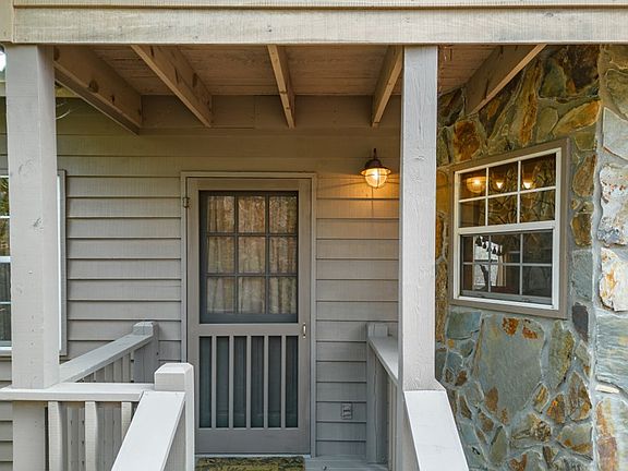 Experience the perfect blend of modern comfort and rustic charm in this fully furnished, turn-key mountain retreat-just 10 minutes southwest of downtown Blue Ridge. This inviting cabin offers a serene, wooded setting with zero lawn maintenance, enhanced by thoughtful upgrades and enduring character at every turn. Located on a winding cul-de-sac road, the exterior features classic cedar siding, a durable metal roof, and a stone skirt that blends seamlessly into the natural surroundings. Inside, the open-concept design boasts a vaulted living area with skylights, tongue-and-groove walls and ceilings, exposed beams, rich hardwood floors, and a cozy stone fireplace-ideal for cool mountain evenings. The eat-in kitchen includes a center island with a double sink and opens directly to the expansive deck through French doors, creating an effortless indoor-outdoor flow. A vaulted bedroom and a skylit, tile-finished bathroom provide bright, inviting spaces with convenient outdoor access. One of the home's standout features is the 4-season sunroom-designed for year-round enjoyment with stone flooring, walls, and steps, a vaulted ceiling, and a private hot tub to unwind in any season. Recent upgrades include a brand-new HVAC system, an advanced security system, new pipe enclosures in the crawl space, and underground cables for high-speed internet-ensuring fast, reliable connectivity while preserving the cabin's pristine natural setting. Whether you're seeking a weekend hideaway or a full-time residence, this thoughtfully updated cabin offers a rare opportunity to enjoy mountain living without compromise. Don't miss your chance to own a Blue Ridge escape that delivers both peace and performance in one unforgettable package.
