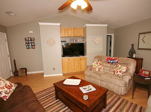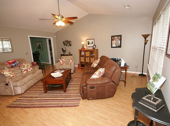 - Great Room: Entertainment Center, Ceiling-Vaulted, Floors-Laminate, Ceiling Fan