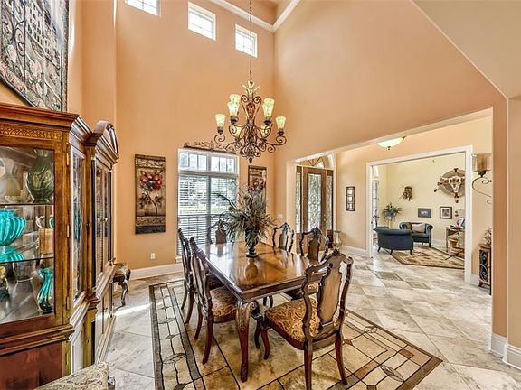 This gorgeous 3 bedroom 2.5 bath home offers a beautiful foyer with tiled floors and an impressive dinning room with its decorative soaring ceiling and chandelier. It has an office and large living room that opens onto the screened-in patio & pool area great for outdoor entertaining or just relaxing. The kitchen with its huge island is open to the living space and has plenty of pull out drawers and pantry space. The master bathroom has a whirlpool bath and a tiled shower with water jets. There are 2 closets in the master bedroom. The 2 car garage has extra space for storage. Located in the gated golf community of Osprey Cove it is 30 minutes from Jax Internat'l Airport, shopping, & Amelia, Jekyll, & St Simon Islands. Check out the 360 video tour.