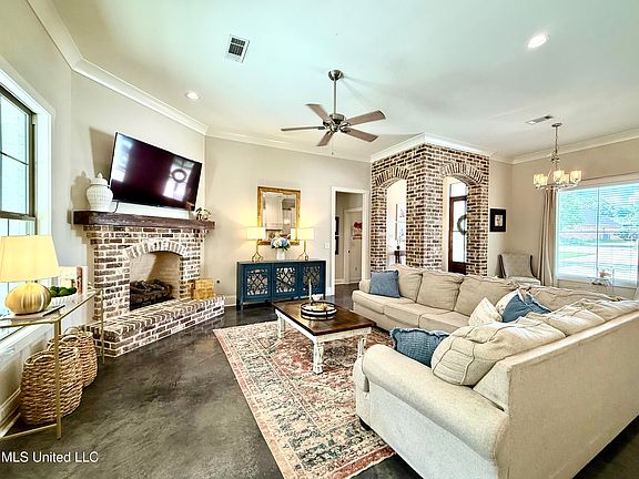 Absolutely gorgeous, better than new 3 bedrooms 2 bath open split plan with 2044 sq. ft. of living space in gated Ambiance of Brandon! This meticulously maintained home features so many custom details with shiplap walls, brick archways and gorgeous finishes! Large living room with gas log fireplace, built-ins and wall of windows overlooking park like backyard! Formal dining of living area. Kitchen is fantastic! Custom tile work, stainless steel appliances, gas cooktop and huge island with breakfast bar and pantry. Spacious breakfast room off kitchen! King size primary suite with pine tray ceiling and amazing ensuite bath! Primary bath features double vanities, soaking tub, separate tile shower, and huge walk in closet! Master closet has covenient access to a HUGE laundry room with utility sink and plenty of additional storage. Built-in desk and cubby areas outside of the laundry room and garage entry. 2 additional guest bedrooms on the opposite side of the house share access to a full hall bath. Covered patio with a patio extension! Privacy fenced backyard backs up to the nature area. Professional landscaping with french drains and rock beds for additional drainage. Ambiance is a low density gated community and conveniently located just minutes from downtown Brandon and all the activities at Flowood! Excellent Brandon Schools! Call your favorite Realtor today for a private showing!