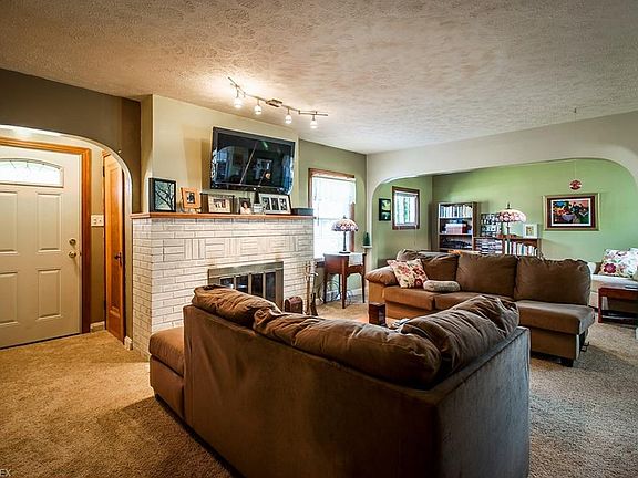 Such a cute house with great curb appeal! Step through the front door into the living room with wood burning fireplace and large archway that separates the office. The bright white kitchen offers plenty of cabinet space, an eating ledge plus a dinette with sliding door to the enclosed porch! A more formal dining space with built-in china cabinet is just off of the kitchen and leads to a bonus room that would make a perfect study. The master bedroom is on the main floor and has access to a full bath. Upstairs there are two additional bedrooms. Bedroom #3 is accessed through bedroom #2 and both share another full bath. The lower level is partially finished and includes a bar area with knotty pine paneling plus built-in storage. You will love the fenced backyard with nice landscaping and water feature. A walkway leads to the 2.5 car garage with automatic opener. Updates include roof, furnace, exterior doors, vinyl siding & fence 2005, garage built & cement driveway added 2008-approximate dates. Conveniently located and move in ready!