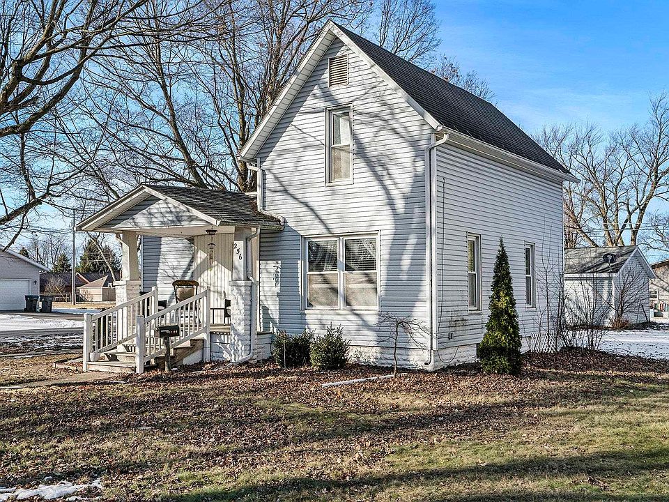 In-town charmer on a corner lot in Nappanee! This 2 bedroom, 1 bath home has an updated kitchen with all the appliances included, a main level bedroom and a main level laundry room. The living room and formal dining room feature luxury vinyl plank flooring. The second bedroom and loft are on the upper level featuring a large closet. Relax on your covered front porch OR on your 10X11 back deck! Home Details: new sump pump, newer windows, water softener included, radon mitigation system installed, washer/dryer included, detached heated garage.