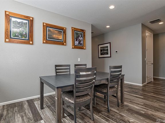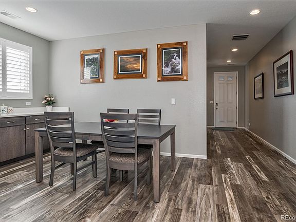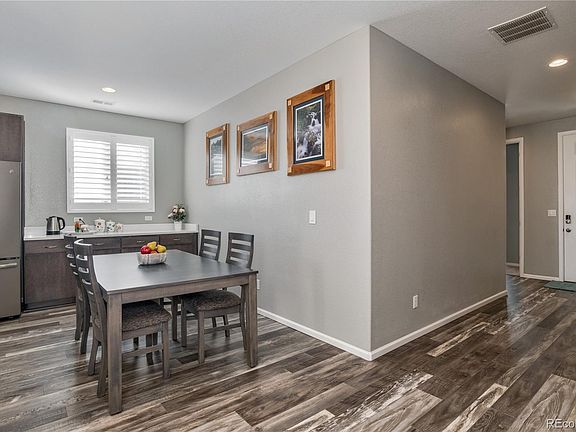 This ranch-style home is ideal for entertaining, offering a spacious great room, a convenient tech center, an open dining room & an impressive kitchen w/ a large center island w/ additional seating, quartz counter tops, 42" cabinets, stainless steel appliances & double oven. In addition to 2 inviting bedrooms & a full bath is an elegant master suite w/ private bath & large walk-in closet along w/ barn door. A central laundry room, 2-car garage & professional landscaping are also included. Beautifully upgraded & finished you are sure to love this Richmond Onyx Ranch home featuring all the Bells & Whistles. Wired for surround, Plantation shutters throughout as well as low maintenance luxury laminate flooring. You will love outdoor entertaining on the covered patio. Don't miss the already installed dog door, perfect for your favorite fuzzy friend. Large fenced corner lot includes a greenhouse shed for gardening. Easy access to DIA & E470. Close to shopping, restaurants, parks/trails.