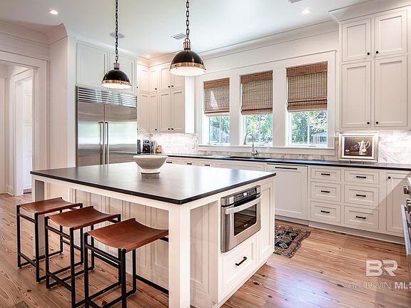 Perfectly set between the graceful curves of Mobile Bay and picturesque downtown Fairhope is this captivating home that emanates Southern charm and coastal allure. Designed by award winning home designer Bob Chatham and crafted by master builder Scott Norman, this thoughtfully constructed residence is located in one of Fairhope’s most popular downtown districts. If you’re dreaming of the quintessential coastal lifestyle, you’ll love this stunning showpiece. Step inside, and be enchanted by elegant finishes and features that are thoughtful embodiments of the spirit of Southern hospitality and upscale living. Unique touches include features such as antique heart pine floors, handcrafted lighting, marble counters, and gorgeous crown molding throughout the home. At the heart of it all, enjoy delightful cooking experiences and entertaining guests in your gourmet inspired kitchen boasting custom cabinetry, Miele professional style range with double ovens and warming drawer, plus Subzero and Scotsman appliances. For your convenience, a beautiful staircase and elevator provide easy access to the 2nd story of the home where you'll find a well-appointed primary bedroom suite and two additional ensuite bedrooms for family or guests. Accessed by a covered walkway, the apartment over the garage (with kitchenette and full bathroom) is perfect for an additional bedroom, media room, office, or an extra special spot for guests or use as an in-law suite. Step outside and celebrate Coastal Alabama outdoor living in your beautifully landscaped yard and courtyard featuring an outdoor cooking area with Primo smoker, Alfresco gas grill, and Alfresco double burner cooktop. Located just 4 blocks from Fairhope’s thriving downtown with boutique shopping, dining, and lively calendar of events, this home embodies private luxury in a charming coastal Southern setting. Buyer to verify all information during due diligence.