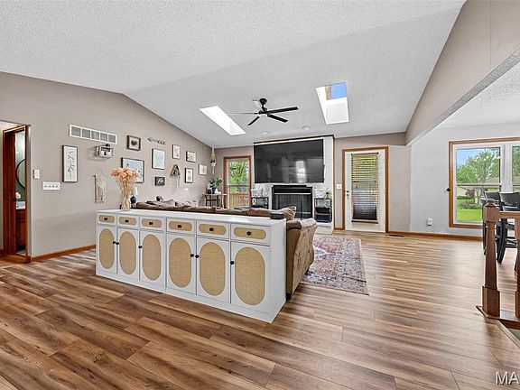 Fireplace, 2 skylites & completely open to BreakfastRm & Kitchen. Newer Stainless appliances. Beautiful wideplank luxury laminate in main living areas. Primary BR Suite w/double closets & barn door to private bath. French doors lead directly to Screened-in Deck to enjoy your morning coffee. All windows new in 2023, lower level slider, water heater, new light fixtures. Room to Spread out with a Legal 4th BR & Full Bath in Lower Level. Large finished FamRm/RecRm w/Bar. Walk out to large patio. Full deck with a screened in portion. Nice, level yard w/plenty of room to run on .30 lot. Located in Lake St. Louis Community Association ~ Enjoy the Lifestyle & Amenities: Clubhouse- restaurant & bar, swimming & wading pool, Golf tennis, pickleball, lake for kayaks & boating! Prefer to sell "as is" for sellers convenience ~ relocating out-of-state.