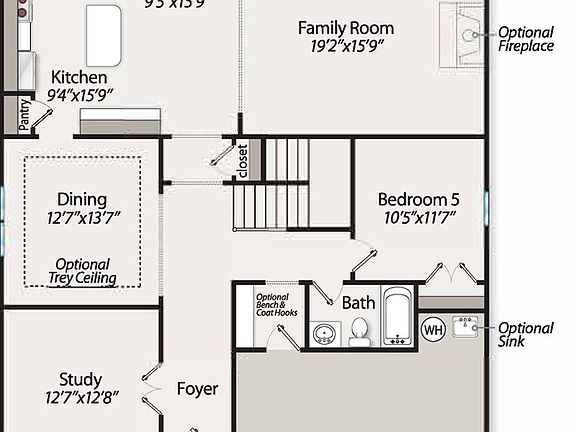 The GRACELYN plan features a two-story foyer, a private study and a formal dining room with kitchen opened to the family room. The kitchen features a breakfast nook, that leads to the patio for outdoor entertaining. There is a guest room and full bath on the main level. The oversized Owner’s suite features an optional trey ceiling, huge walk-in closet, and a double sink vanity. Included are 3 secondary bedrooms, bath, and sizeable laundry room. 3-car garage and Screened in deck. LARGE lot