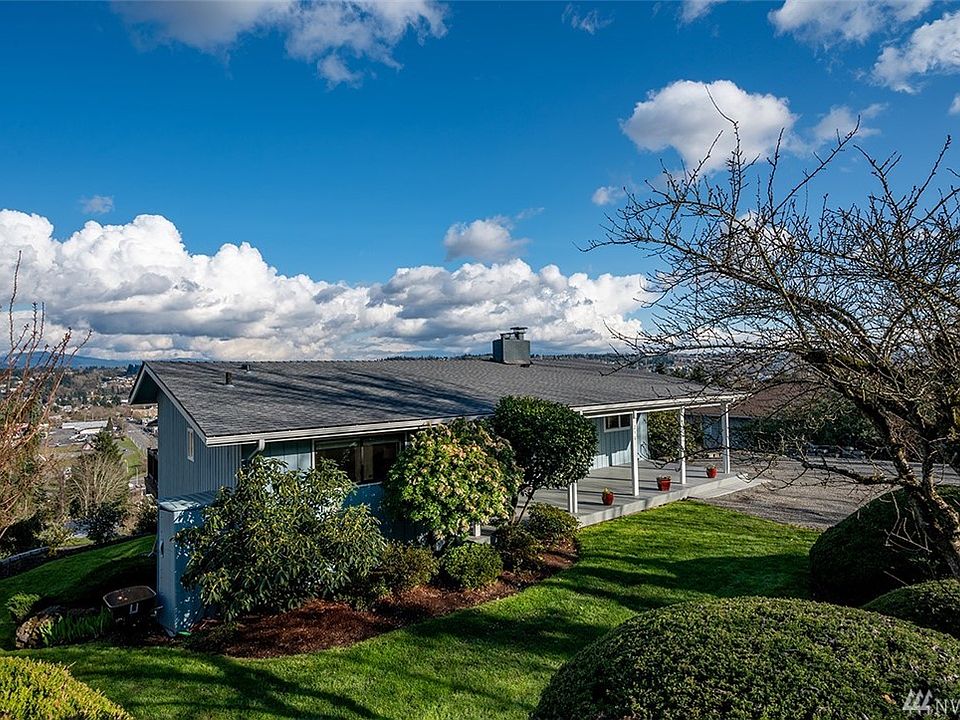 Panoramic Mt. Rainier & Cascade foothills view home boasts $100,000 remodel! Kick off summer W/BBQ's on the expansive view deck, start a garden and enjoy all this gorgeous mid-century home with modern finishes has to offer. Gleaming hardwoods, walls of windows, quartz kitchen. Large living rm, bonus rec/media rm, two fireplaces, central A/C. Impeccable landscaping, hot tub & RV parking. Rocking chair front porch, 10,000 SF private lot. Great location near BOEING, shops, restaurants, all freeways