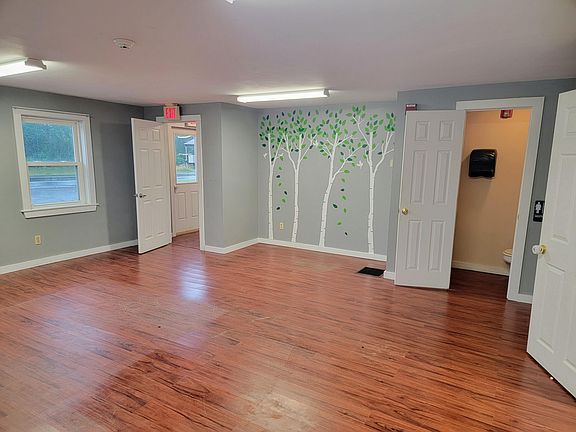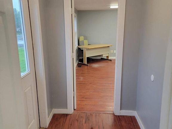 Recently updated office space that was previously a single family home...could be converted back to a home with a little time and effort. Fenced in back yard, two 1/2 Bathrooms, a kitchen/dining room as well as two large rooms at the front of the building as well as a large room in back with heat pump, and new carpet. Possibilities are endless~! Great parking, level lot, and has a new hookup to the town water supply.