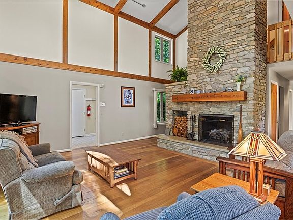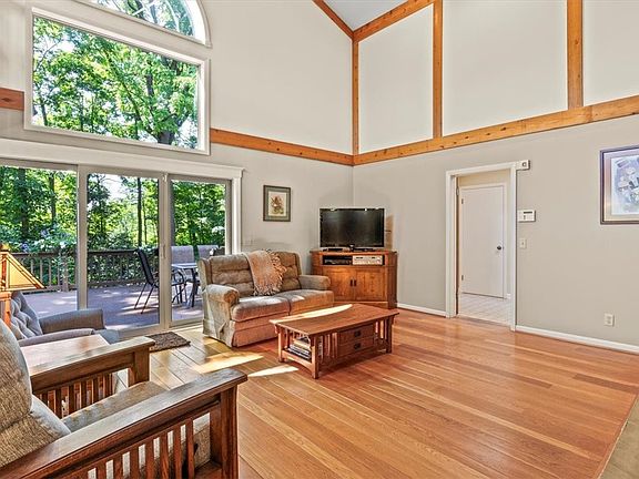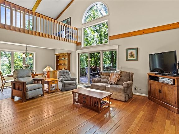 Contemporary Colonial nestled on a wooded lot that feels like your own private sanctuary! Approach via the circle drive (2020) & admire the natural landscape & New England style vinyl shake exterior (2010). The family room will impress w/ soaring ceilings, grand FP & gorgeous wide plank floors. Sliding glass doors open to an expansive deck w/ steps to the yard. The beautifully updated eat-in kitchen (2018) w/ quartz counters & SS appliances is open to the family room & offers amazing vistas of the Perinton countryside. Adjacent to the kitchen is a convenient 1st floor laundry & a light-filled living/dining room w/ access to a 2nd deck. Located off a private hall, the primary suite features a large walk-in closet & full BA. Above the garage discover a private retreat ideal for an in-law suite w/ a kitchenette & full BA. The 2nd floor has a versatile loft, 3 BR, office/4th BR & full BA. The walkout 12 course basement offers untapped potential. Additional highlights include Fairport Electric, a HE heat pump (2018), a new 200amp panel box (2018), & a 30-year roof (2016).