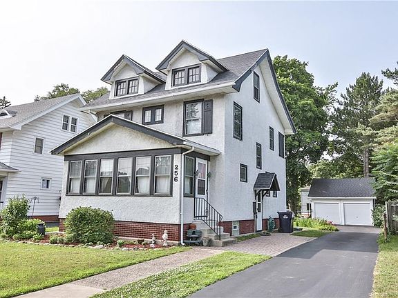 Great location & West Irondequoit Schools! Charm of yesteryear! Gum wood trim and wood work, Leaded windows and doors. Original glass doorknobs. Formal dining room with window seat. Hardwood floors. Enclosed screened front porch. Kitchen features additional room with storage & pantry area - perfect to expand the original kitchen into. Nice sized bedrooms with closets and electrical outlets. Sleeping porch off one bedroom. Main bath features has oak vanity with 2 sinks and built-in storage cabinets. Jacuzzi Tub/shower. Full walk up attic! Basement has laundry and plenty of storage also toilet/sink area-glass block windows. 1st floor powder room. Great yard with gorgeous gardens/perennials. Separate 2 car garage 18 x 18. Furnace 2005. C/air. Hot water heater 2016. Roof 2009.