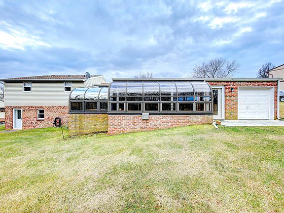 Pride of ownership shows in this custom built, all brick home. Super location, quiet development close to high school, with farmland and wooded area behind. Spend those cold snowy evenings in the warm and inviting enclosed patio room with glass walls over jacuzzi. Master BR with walk-in closet. Recently updated kitchen with custom tile floors, granite countertops and stainless steel appliances. Add'l lawn equipment storage room behind garage.