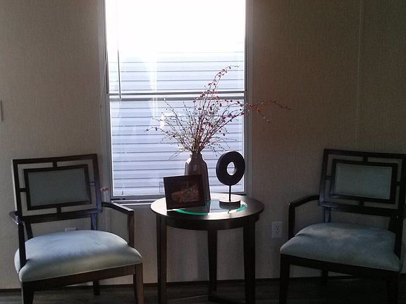 Beautiful open floor plan with an island that includes a sink and a breakfast bar. The kitchen has plenty of storage and counter space with a built in desk. This home has a separate dining and utility room. The master includes a glamour master bath. This home is available with land. Price includes delivery, setup, ac, skirting, two sets of steps, utility connections, and land improvements.