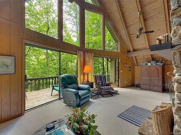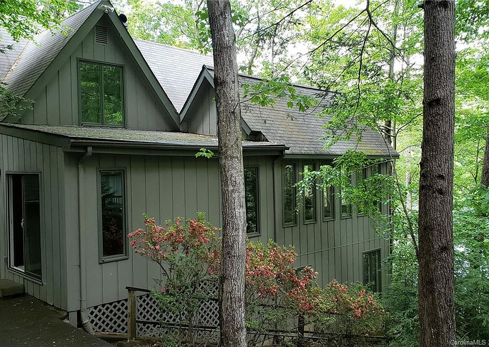 Loaded with rustic charm, this mountain retreat is one of the first homes built on private and beautiful Bald Mountain Lake. Owners and guests have full access to all Rumbling Bald Resort amenities (pools, tennis, fitness center, golf, beach on Lake Lure and more). The living room has a cathedral ceiling with floor to ceiling windows/sliding doors providing access to the large deck and a peaceful view of Bald Mountain Lake. A fabulous stone, wood-burning fireplace also soars to the ceiling. A large master bedroom on the main level with a nicely tiled shower in the bathroom. The kitchen has a pass-through to the dining room, which adjoins an open and bright den or family room with more lake views. Enjoy an easy walk down a woodland path to your private dock and floating dock for lake activities! Two bedrooms and full bath on the upper level and an additional bedroom and full bath downstairs provide plenty of room for family or guests. Would do very well as a vacation rental.