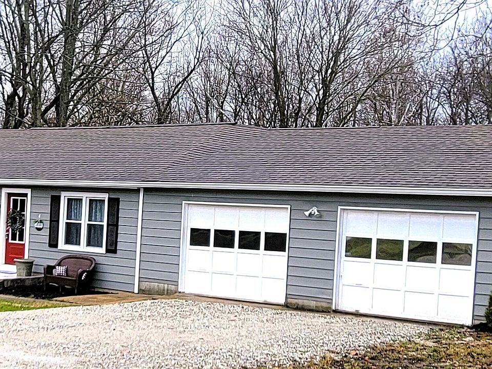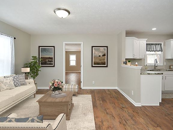 Looking for that split ranch plan with enough acreage to have your own privacy in a rural setting? The 1.25 acre lot is plentiful with several trees and a nice yard. This 3 bed, 2 full bath home is ready for you to move into and is so updated and fresh! Just remodeled with new paint, flooring, trim, lighting, fans, bathrooms (tubs, tile and vanities), kitchen refresh with all appliances included. The exterior got a great face-lift too with new exterior paint, doors, mulch and gravel for the driveway. The plumbing and electrical was completely updated as well. The updates have made it open and inviting with a lot of natural light. Favorite things: rural but easy access to interstate and amenities, large lot, no HOA, mature trees in the yard, garage door in back of garage for easy access. Come see it!