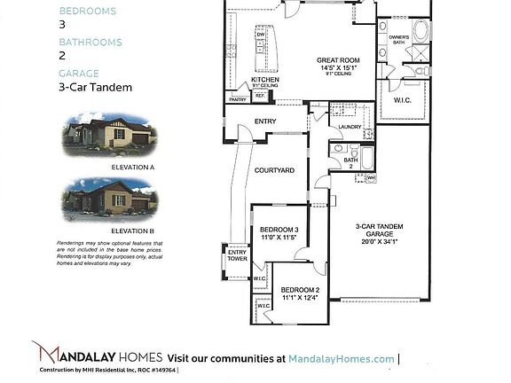 The Star Gazer at The Traditions at Mountain Gate is expertly designed for energy efficiency, comfort, and durability. Every detail of this 1,914 square foot floor plan has been thoughtfully considered. The spacious Great Room is perfect for gatherings and opens out to the patio with a variety of sliding door options. There are plenty of design options to make Star Gazer your own, from a magnificently appointed gourmet kitchen, to the tile in the spacious owner's bath. The Star Gazer starts at 1,914 square feet, 3 bedrooms, 2 baths, with a 3 car tandem garage.This Star Gazer floor plan comes with solar and sonnen energy storage included.