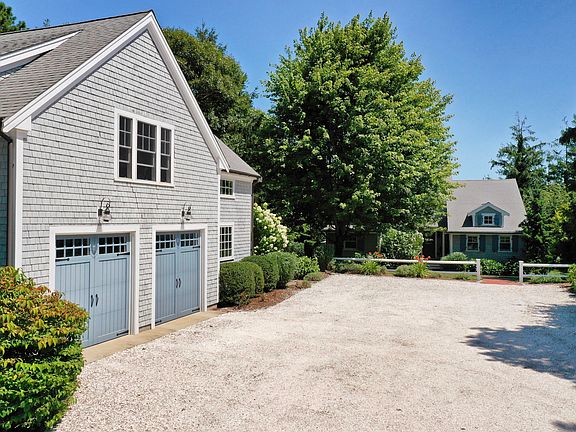 Welcome to Harbor Coves! Rare opportunity in one of Chatham's most desirable neighborhoods with Association access to a private beach and boat mooring availability on Crow's Pond. Set high on a hill, the 3 bedroom, 2.5 Bath post and beam main house features quality workmanship and classic millwork throughout. Gourmet kitchen, private den, living room with fireplace and half bath make up the first floor living area in the main house. Wrapped on three sides by decks and a covered porch makes indoor/outdoor living and entertaining a breeze. The second-floor features three bedrooms. The primary bedroom is en-suite and has French doors out to a private deck, made more private by the property's lush landscaping. Stairs from the deck take you to a roof top oasis where a Sonos wireless whole house sound system awaits along with spectacular year-round views of Pleasant Bay and the Atlantic beyond. The detached two-car garage is a post and beam design with mudroom and office on the first floor and an impressive, spacious 1 bedroom studio above with luxurious full bath, 20' high vaulted ceilings and French doors opening to a private deck with seasonal views of Ryder's Cove.