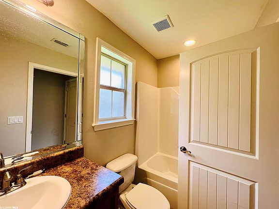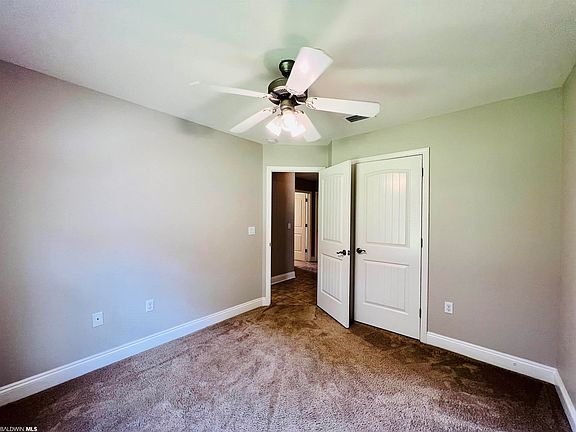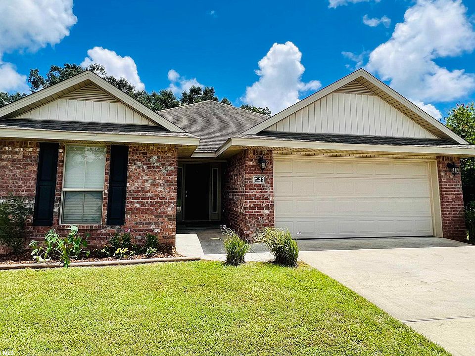 Beautiful Brick home, LOW HOA fees, and a large fenced in backyard. This home is close to downtown Foley, OWA, Shopping, schools and the beach. This 3 bedroom 2 bath home has been freshly painted with Accessible Beige as the wall color inside and new white faux wood blinds were just installed. The kitchen is open to the living and dining area and features an eat in high top bar. The Frigidaire Refrigerator is 2019 and the Frigidaire Dishwasher is 2020. The Primary bedroom features a trey ceiling and a walk-in closet. There is a large bathroom with a walk in shower and 2 sinks. Ceiling fans are located throughout the home. A New HVAC was installed in December of 2021 and has a 5 year parts warranty. The yard is a paradise, a large lot with Fresh landscaping, shade trees, blooming magnolias, a storage room, a concrete pad waiting for your outdoor BBQ pit and the back yard is fenced. The home comes with Hurricane Shutters is also under a Termite Bond until December. Come see this house as it will not last long!