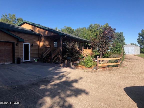 Nature lover's sanctuary. Beautifully updated and maintained ranch-style home with views to die for. 3 beds, 2.5 baths, main floor laundry, hardwood floors, custom cabinets, and 2634 total sf. 9+ acres of mature trees and impeccable landscaping, fenced back yard, complete with 40x80 building with 14' doors. This wildlife paradise is just west of Grand Forks County, and 40 miles from GF Air Base.