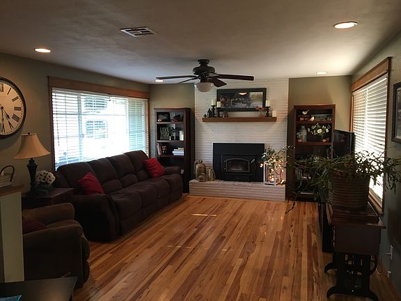 This one has it all! Hardwood floors throughout, tile floors in the kitchen, indoor laundry, raised hearth fireplace for the cool evenings ahead plus a heat pump and high efficiency wood stove. Updates include new vinyl windows, lighting and much more. Outside features include covered RV parking, a large fenced backyard, UG sprinklers, storage shed & manicured yard. Oversized 2 car garage and new exterior paint too! Move in ready!
