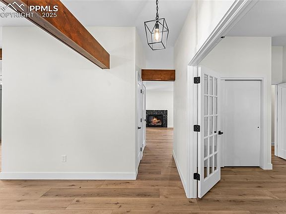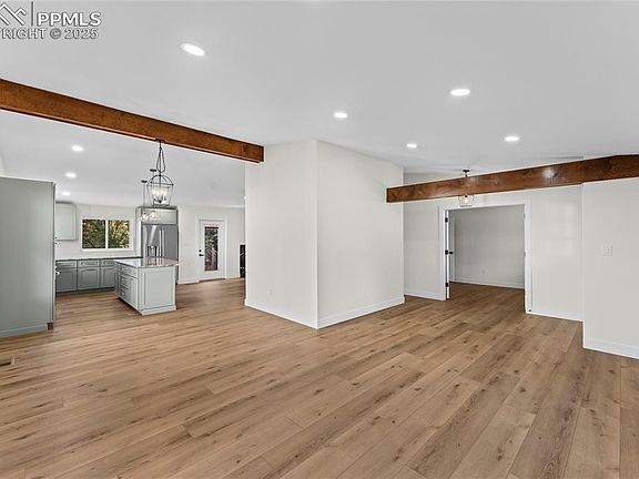 This completely remodeled home blends high-end design with thoughtful upgrades and a prime Colorado Springs location. From the moment you walk in, you're welcomed by a bright, open-concept layout featuring wide-plank flooring, exposed wood beams, and stylish new lighting throughout. The heart of the home is a fully renovated kitchen with soft sage cabinetry, granite countertops, brand-new stainless steel appliances, and an oversized island perfect for gathering with friends and family. Every inch of this home has been modernized, from the brand-new fireplaces that anchor multiple living spaces to the fully updated bathrooms with designer tile, custom vanities, and matte black fixtures. The finished basement offers flexible space ideal for a home theater, gym, or guest suite. Major upgrades include a Class 4 impact-resistant roof, a new composite deck and gutters, R-49 attic insulation, an upgraded 200-AMP electrical panel, and fresh duct and dryer vent cleaning. Several new double-hung windows bring in abundant natural light, and all trim, interior doors, and fixtures have been replaced for a truly turnkey finish. Perfectly located just a block from Dublin Park and minutes from the Air Force Academy, this home offers easy access to top schools, shopping, and outdoor recreation—all while tucked into the quiet, well-established Vista Grande Terrace neighborhood. This is Colorado living, reimagined and move-in ready.