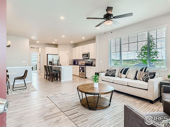 ** Builder is offering a $4050 closing cost incentive ** This remarkable lock-and-leave townhome offers effortless single-story living with the upscale craftsmanship for which Windmill Homes is renowned, including features such as quartz countertops, custom-tiled backsplash, laminate wood floors, stainless steel appliances, and more. The attached 2-car garage ensures secure parking, while the expansive unfinished basement offers versatile options for storage or future expansion. Notably, this home boasts 34" wide door openings, a seamless, stair-free front entry, and a zero-threshold primary shower. As a Brookstone resident, you'll enjoy exclusive benefits, such as an annual complimentary aquatics pass for Milliken Pool. This pass provides access to a wide range of activities for the entire family, including access to swim lessons, senior water walking, open swim, and more! Located just moments away from Milliken's premier Centennial Park, you'll have the opportunity to enjoy the lake, go fishing, unwind at the Milliken pool, let your dog roam freely at the dog park, play frisbee golf, or make use of the Thompson Rivers Park and Rec center facility. The convenience extends to education, with two exceptional charter schools within walking distance, highlighting how the Brookstone townhomes by Windmill Homes cater to the needs of the community. Relax and reclaim your time with the assistance of the HOA, as exterior maintenance tasks are taken off your chore list.