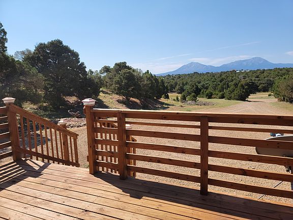 Great views of the Spanish Peaks! This 4 bed/2 bath home is clean and ready to move in. No pets or smokers have been inside this little gem. There are porches front and rear and a relaxing hot tub in back. Park in the 2-space carport that currently exists and there is a spot to ready build a larger garage or workshop just behind the home. 220 power is to the post by the carport and can be extended to the new building. 10 x 16 Greenhouse and upgraded storage shed are on site and ready for use. The home is cozy year round with blown insulation and an encapsulated crawlspace. The wooded lot will give you plenty of privacy and there is new privacy fencing going in, too. Did I mention the views? More details than can be listed in this space. Come and see for yourself!