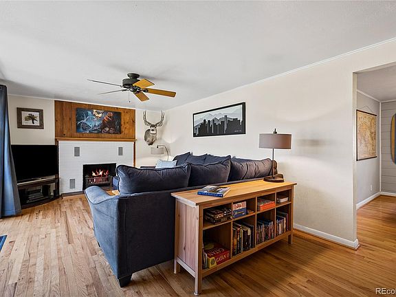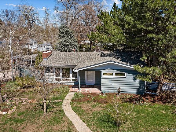Surrounded by towering trees and groupings of dazzling perennial flowers, this incredibly charming "Cape Cod" cottage is settled on a spacious .38/acre coveted corner lot. Primed for a sleek addition, pop-top or full redevelopment, the design and setting conjure east coast vibes. The interior is trimmed with beautiful hardwoods and scenic windows. A wood- burning fireplace is the focal point in the living room as hardwoods traverse down a hallway leading to the homes 2- bedrooms and full-bath outfitted with glass-block windows, a pedestal sink, and tile floor and shower-surround. Adjacent to the living room, the cozy dining room offers passage into the galley kitchen adorned with timeless oak cabinets, a 4-burner gas range and Kenmore appliances. A pocket-door off the kitchen conceals the mud room with stacked Kenmore washer/dryer and an entrance to a bonus 3/4 -bathroom. Also, in the mud room is an exterior door leading to the single-car, detached garage accessible via a breezeway lined with flagstone. The flagstone patio continues into the treelined backyard and provides the foundation for a perfect outdoor entertainment space complete with garden beds, sitting area, brick fireplace and built-in, al fresco kitchen with gas grille and food prep area. Short distance to the natural haven of Crown Hill Regional Park and Lake, where birds and other wildlife dwell; and to Gold's Marketplace, a coming-soon hot spot for restaurants and retail in Wheat Ridge. Close proximity to a bikeway along 26th Ave, easy access to Sixth Avenue/I-70, and in the crosshairs of the foothills & Wheat Ridge/Highlands.
