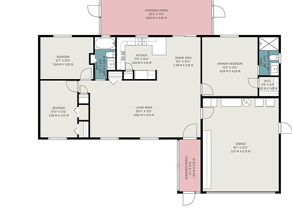 - Patio & porch: Front Porch, Rear Porch, Screened