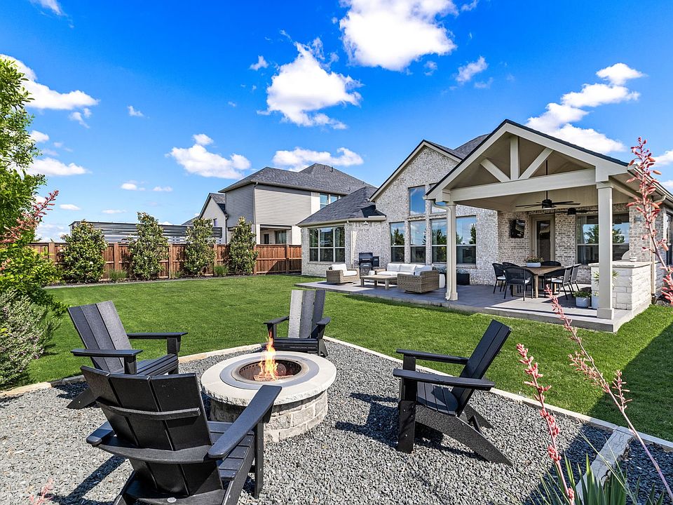 Step outside to your very own backyard retreat, featuring an expanded covered patio, built-in outdoor kitchen with stainless appliances, and a cozy fire pit—ideal for year-round gatherings.