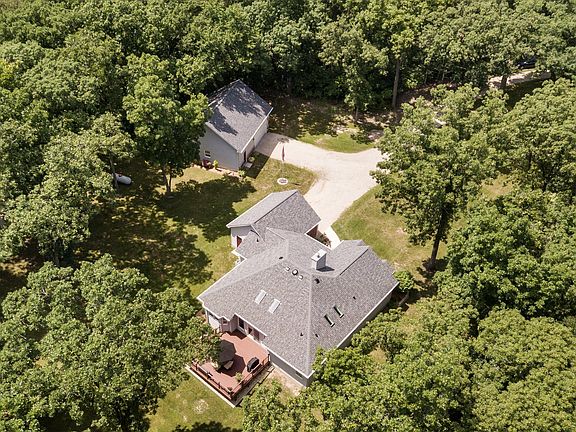 Your home search is OVER...This one owner home is situated perfectly on 6 acres surrounded by the serenity of nature~the wooded acreage attracts beautiful wildlife and has a ravine to the north side of the home. The home was carefully situated among the woods, leaving room for a large enough yard to host a full basketball court, an adorable play area with a playhouse, and of course a 36x30 Shop that has a large attic for storage, its own 100gal LP tank, and a large overhead door with opener. In 2016 a new deck was added behind the house and was recently stained this year ... it's a perfect place to sit and enjoy your morning coffee. Newly replaced roof and sky lights are just two more awesome features! In the winter the fireplace in the spacious living room keeps the furnace from running as much with a cozy heat heatilator with extra vents toward the bedrooms to evenly blow the heat. In the summer you can use the whole house fan to help keep the house cooler. A spacious kitchen has room for barstools and a table. The sprawling unfinished basement is your perfect spot to let your imagination run wild and make it your own..finish it off how ever you would like, it is plumbed for a bathroom, there is an ejector pit, and a sump pump. This is one home you will truly want to see to appreciate! Call for a private showing!