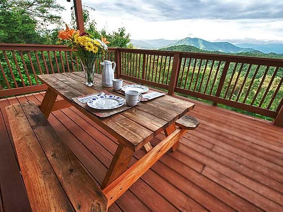 **4 Bedroom Cabin on a 3 Bedroom Septic** Layout: Main: living area with stone, gas fireplace and flat screen with cable and DVD player, full-stocked kitchen, dining area, bath with shower stall, queen bedroom with flat screen with cable and 1/2 bath on the left side. Upper: King master suite full bath with tub/shower combo. Lower: Game room with pool table, sitting/TV area with 47 inch flat screen and DVD player, laundry room, deck with hot tub Open floor plan with fully stocked kitchen, large laundry room and all the amenities of home. Summit View is a great place to honeymoon, celebrate an anniversary, reconnect and retreat. If you love the outdoors, fly-fishing, photography, or getting back to the stillness and sounds of nature, this is the place for you. Close to all the fun of action-packed Pigeon Forge. Amenities include: * Open Loft * Gas Fireplace * Hot Tub * WiFi * Flat Screens w/Cable TV and DVD players * Wraparound Deck * Charcoal Grill Picnic Table * Rockers and Swing * Paved Access
