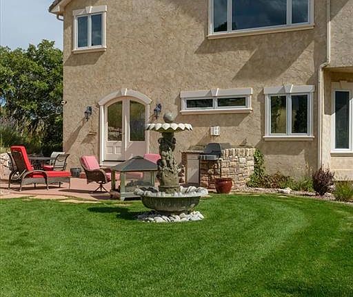 Welcome Home! This exquisite home is a regal sanctuary located in close proximity to nature and beautiful views. It offers a unique and timeless experience for those seeking the perfect balance between luxury and tranquility. It is EVERYTHING that Mountain Shadows has to offer! The home is a masterpiece that exudes elegance and regality. The entry way greets you with a curved, cascading staircase and a beautiful light fixture that embodies stunning design and functionality. You can look forward to enjoying the breath-taking cityscape views with all of the large windows around the home. There is a main level study and powder room. The living space provides the perfect mood to cozy up and enjoy the fireplace. The gourmet eat in kitchen is every chef's dream equipped with stainless steel appliances, a gas down draft range and tiled countertops. It offers both functionality and aesthetics, making it the heart of the home where culinary creations are born. The brand-new patio doors welcome you to the outdoor oasis that presents the granite adorned exterior kitchen equipped with outdoor grill and fridge, perfect for your entertaining needs. A few steps from the kitchen leads you to the elegant formal dining area presenting a beautiful, coffered ceiling and hearth room. It's a room that invites you to savor not only the exquisite cuisine but also the company and the ambiance. The primary bathroom hosts a luxurious elegant 5 piece bath with a garden style tub. The primary suite presents a large walk-in closet and a grandiose presence. There are two other bedrooms and a full bathroom on the upper level. The cityscape view from the two upper bedrooms is breathtaking. The lower level presents the fourth bedroom, another full bathroom and a walk-out. The space in the lower level is perfect for movie nights or a separate living space. This home is more than just a residence; it is a regal retreat where nature's majesty and luxurious living converge