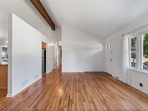 Step inside to soaring vaulted ceilings and newly refinished wood floors that flow throughout the home. The open-concept kitchen is both stylish and functional, featuring abundant counter and storage space, a recent remodel, and new stainless-steel appliances that stay with the home.