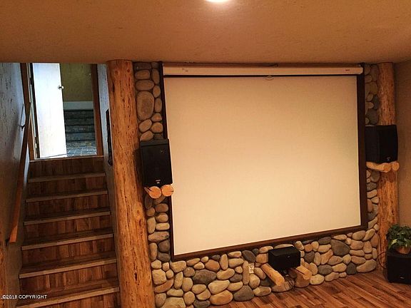 Outdoor living for family fun. 450 sq ft southern exposure rear deck, sand volleyball court, firepit and smores station, and full scribe log sauna for those cold winters with a covered deck. Inside features wine cooler, theater room, tile and stone updates in kitchen, daylight basement and bath. Fresh paint and flooring. All appliances, chest freezer. MBR plumbed 1/2 bath. Other outside items
