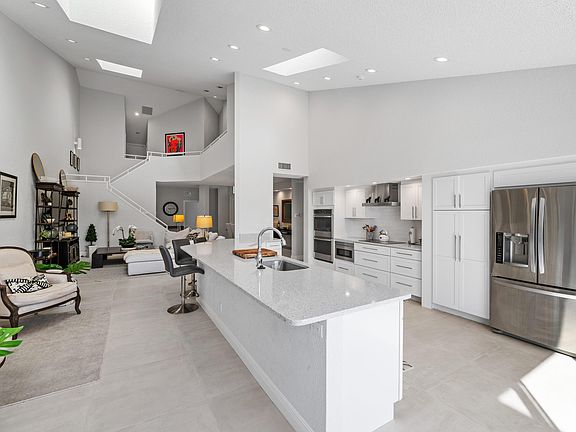 Facing the preserve, this updated, spacious and bright home is the perfect place to enjoy the season in Wellington. You will love the open floor plan with a newly remodeled kitchen. The main bedroom suite features two full baths and is sure to please. Upstairs, there are 3 bedrooms, each with their own full bathroom. A downstairs office, powder room, heated pool and Jacuzzi make this oasis the perfect spot to rest. Hurricane impact doors to be installed by seller prior to closing.