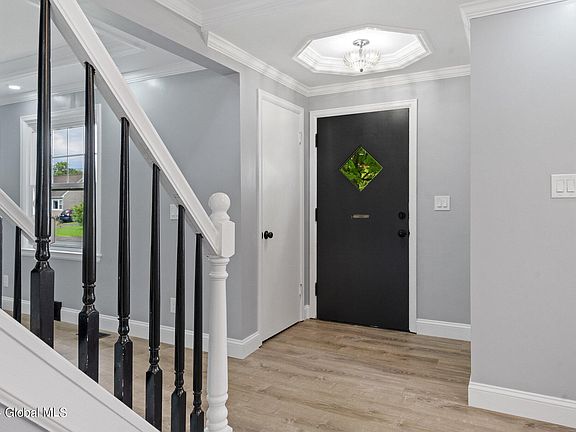 Discover the perfect blend of modern elegance and classic charm in this fully remodeled 4-bedroom, 2.5-bath home in the Schenectady School District. Featuring first floor primary en-suite, brand new kitchen and three stunning ceramic-tiled baths, this home boasts ample crown molding, tray ceilings, recessed lighting, and both new and refinished hardwood flooring. Enjoy natural light through the many new windows throughout the home. The living room offers a cozy built-in electric wood stove with a stone surround. Benefit from updated plumbing and electrical systems, a new furnace, and a new hot water tank. With a 3-season room, full basement, 1-car garage, and set on a spacious corner lot, this home is truly a gem ready for you to move in