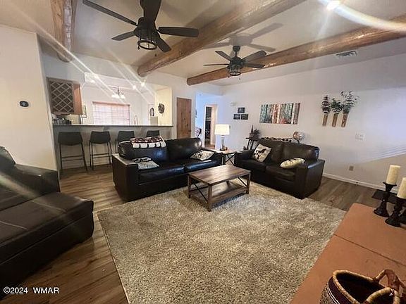 Outstanding furnished lower level condo in Pinetop, AZ. This three bedroom, two bath condo features a split floor plan, open living area with huge kitchen. Updates include new vinyl plank flooring throughout, new quartz countertops in the kitchen, updated appliances, freshly painted throughout and new ceiling fans installed. Enjoy the seasons on the covered back patio. HOA is $620 per quarter. Rentals of 7 days and longer allowed.