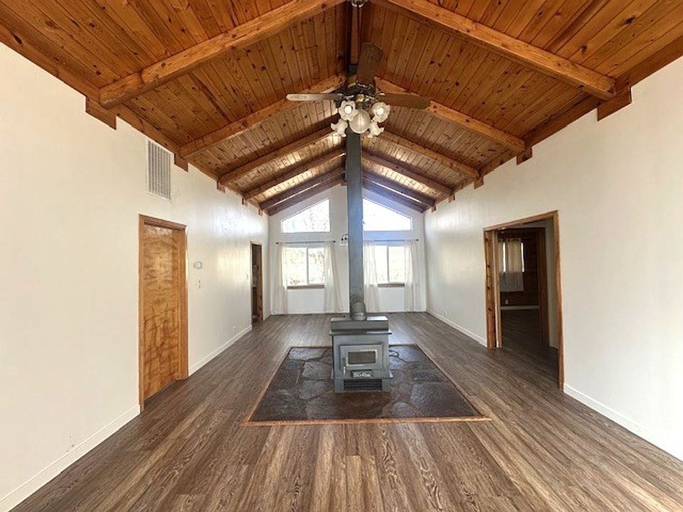 This 3-bedroom home has been remodeled with new flooring, paint and bathroom fixtures. It comes with a 1 car garage, wood burning stove and major kitchen appliances, The park is landscaped with mature trees and grass. Owner pays for trash removal and water. Tenant pays for electric and propane. Dogs upon approval with additional deposit.