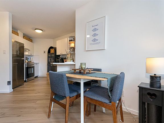 Nestled at the top of a well-run building, this light-filled newly updated condo offers the best of easy urban living. The vaulted ceilings and open-plan design give the home a spacious feel, while the oversized windows frame views of the treetops and nearby park. Just around the corner, Quadra Village offers groceries, dining, cafés, shops, theatre, and green spaces - everything you need at your doorstep. A private balcony provides a quiet outdoor escape, with secure parking and flexible bylaws allowing pets and rentals. Perfect for first-time buyers or those seeking a smart investment in one of Victoria’s most walkable neighbourhoods.