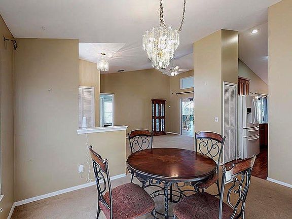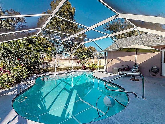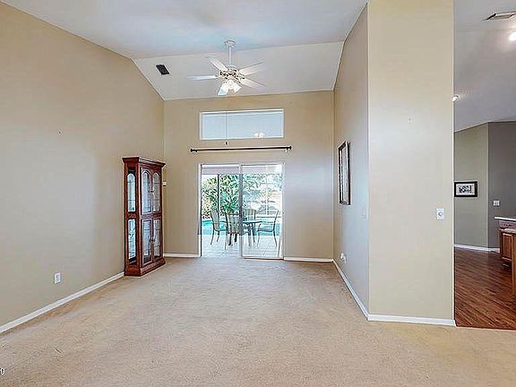 Enjoy the best of Florida living in this beautiful, pool home in lovely Wickham Forrest neighborhood across from Post Commons shopping Center. Brand new (November 2025) white oak luxury vinyl plank flooring throughout. Covered, pool-side patio with built in bar, perfect for entertaining year round. Private, fenced yard. Kitchen features all new stainless steel appliances, granite counters, bar area, and breakfast nook overlooking pool. Large, open layout family room with cathedral ceilings and fireplace. Formal Living and dining areas. Split floor plan with large master bedroom and walk-in closet. Master bath features brand new shower re-tiled in 2025. Laundry room with washer and dryer. Pool-access bath with double sinks by the additional 3 bedrooms. 12 minute drive to the beaches.