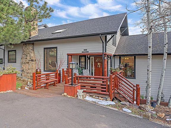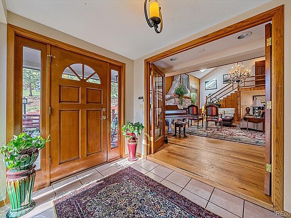 The lodge style home with classic Mount Vernon charm and appeal was purported to be a 1944 hunting lodge and is now a stunning, totally updated 4643 sf Colorado gem ideal for entertaining and a one of a kind foothills lifestyle. The impressive two-story great room with a dramatic antler chandelier is anchored by a massive stone fireplace with a log mantle and flagstone hearth. The open lodge style staircase and walkway with log railings overlook the great room and provide access to a luxury 624 sf master suite, 2 charming bedrooms, a bath and cozy library /office. Stunning protected and unobstructed views of Clear Creek Canyon, foothills, and sparkling city lights are enjoyed from these rooms as well as the lovely dining room with floor to ceiling glass, the adjoining spacious sleek kitchen and large family room. French doors open to a private deck, woodland landscaping, a sandstone patio, fish pond, fire pit and hot tub! A private wing with two large main floor bedrooms and bath offers work at home options. The lower level includes a workout room, storage, and hidden craft room! This spectacular home is perfect! Excellent taste and quality in every detail: Updated kitchen and baths, wide plank hardwood flooring, fabulous lighting, new roof and Hardy cement siding, newly paved driveway and guest parking. Mount Vernon’s unique community of just over 100 homes is steeped in tradition and history established in 1921… 100+ years ago! The celebrated Mt Vernon Canyon Club offers stunning vistas and fine and casual dining. There are beautiful pool and active tennis complexes (3 hard, 3hydro clay, paddle, 4 pickle ball courts), a wellness center, community garden, one of a kind horse facility w/ an outdoor arena, barns, 300 acres of pasture on 1000 acres of open space. Ongoing traditions include progressive dinners, a holiday party, 4th of July picnic, an infamous sledding hill and ice-skating rink enjoyed by all. A close community of all ages and many interests!