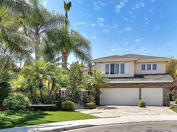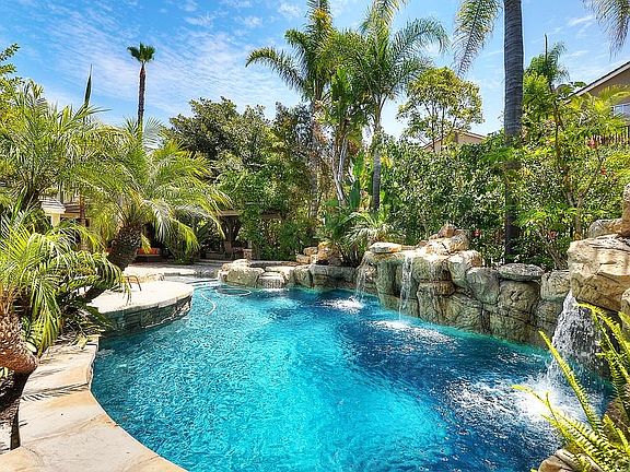 Tropical oasis beyond words!! Have you been searching for a home to live like you are on vacation EVERYDAY? Welcome to this amazing sanctuary of pool, sun, privacy & LAND including a fruit orchard!! 50 ft. rock pool, 12 ft deep, 2 teeter rocks, 7 waterfalls, reef shelf entry w/umbrella landing, 12 person spa complete with fire pit. This ultimate retreat also includes a built-in BBQ, 8 person island a raised dining area with covered arbor & a green house. Situated at the end of cul-de-sac w/security gate entrance this pristine home will steal your heart! Soaring ceilings at entry & grand staircase. Gourmet kitchen w/granite counters, high end appliances, travertine floors & adjacent to family room w/built-in wine cabinet. Main floor bed & bath. Master retreat offers sitting area, dual fireplace, romantic double door exit to balcony. Bath w/granite counters, tub & shower, large walk-in closet. 3 more beds up w/shared bath. 3 car garage w/built-in cabinets. Beautifully maintained home, loads of curb appeal, lush mature landscaping w/stunning grounds, make this a one of a kind property, SO DON'T MISS OUT! PLUS, this home is part of the Lake Mission Viejo ammentities that include access to the lake, beach, boat rentals, concerts in the park & holiday events.