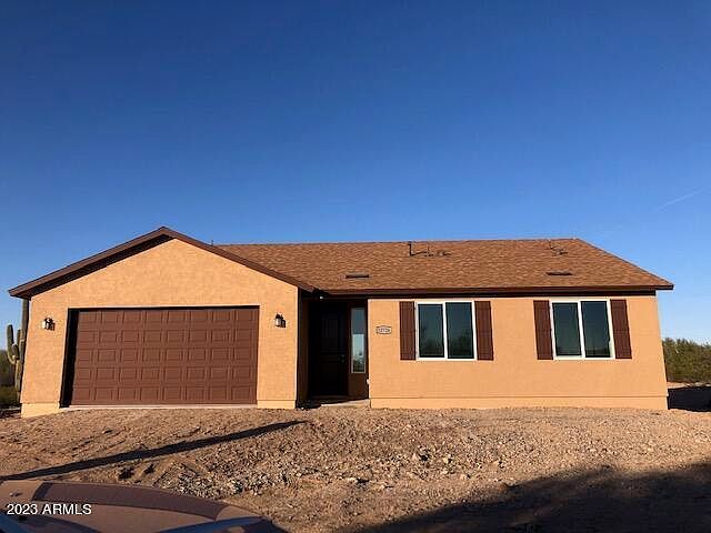BRAND NEW 1,658 SQ FT, 3 BED/2 BATH SINGLE LEVEL HOME ON A 2.3 ACRE LOT WITH NO HOA'S, BRING YOUR HORSES, TOYS & RVS!! THIS HOME HAS GREAT CURB APPEAL, INSIDE YOU WILL FIND THE MOST CHARMING KITCHEN-GREAT ROOM FEATURING WALLS OF GLASS, TRUFFLE ( BROWN ) CABINETS, QUARTZ OR GRANITE COUNTERTOPS, A HUGE KITCHEN ISLAND & A LARGE PANTRY. 18X18 INCH CERAMIC TILE COVERS THE FLOORS EXCEPT FOR CARPET IN THE BDRMS. HIGH VAULTED CEILINGS, THE MASTER FEATURES AN OVERSIZED CLOSET ALONG WITH A QUARTZ TOPPED VANITY W DOUBLE SINKS & A CUSTOM TILE MASTER SHOWER THE BUILDER IS WAITING ON THE PROPERTY SPLITS AND THE BUILDING PERMITS THROUGH MARICOPA COUNTY, THE ESTIMATED COMPLETION DATE FOR THE HOME IS MARCH / APRIL 2024. LOCK THE PRICING IN NOW WITH THE PRE CONSTRUCTION PRICING OFFER.