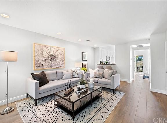 Light and bright townhouse with spectacular hillside VIEWS! This turnkey and recently remodeled 2 bedroom 1.5 bathroom home is just what you have been waiting for. Upon entering you are greeted with a spacious open floor plan right into a roomy and freshly painted living room, with BRAND NEW laminate flooring and carpet throughout! The kitchen/dining room features Granite countertops, pristine white cabinetry, and stainless steel appliances. Numerous features and updates can be found throughout including recessed lighting, upgraded rustic light fixtures, two gas starter fireplaces, and newer windows, stove, AC, water heater and dishwasher. Watch the delightful hillside sunsets from the dining room, private patio, or secondary primary bedroom. The unit is one of a few units in the community that have a DIRECT ACCESS GARAGE. One additional assigned parking space is included. A pool, spa, and tennis court are just some of the amenities offered at the sought-after community of Sparrow Hills. Near walking paths, parks, shopping, entertainment, dining and conveniently located to South OC's beaches: Dana Point, San Clemente, Laguna Beach, and Monarch Beach. Don't miss out on this gorgeous home!