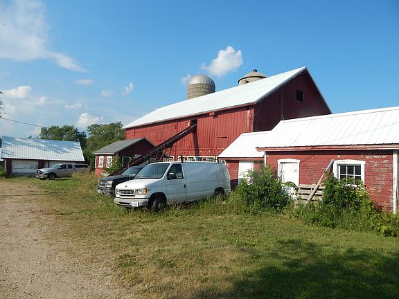 Great 17 +- acre Farmette with 4 outbuildings. One large barn with loft and two silos, one large machine shed and two smaller out buildings. House has just been newly sided and is in good condition. Featuring a newer kitchen with crafted cabinetry and stainless steel appliances including Oven range, refrigerator and dishwasher wooding burning wood stove in open kitchen and dining area. There's also a sunroom and a First floor main bedroom and bath with recently tiled walk in shower plus two bedrooms upstairs with hall bath also newly tiled. This home features a covered deck overlooking the property to the North with awesome views!
