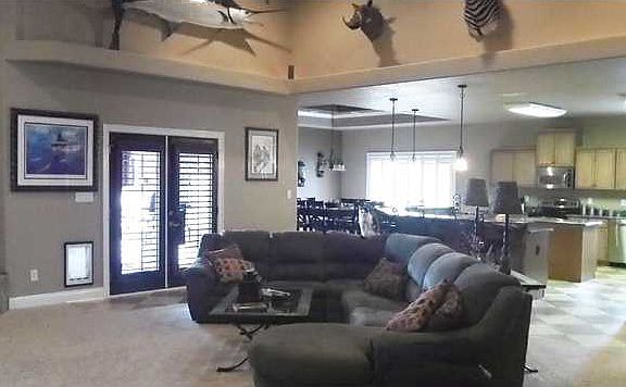 Why go on vacation when you can live at a resort? This lake front home was made for fun! The huge open floor plan has space for all your guests. 20 people can easily dine in the huge kitchen and dining area that look into the living room. The extra room boasts a full bath, built in bar, fireplace, TV, ice maker, wine cooler, and dishwasher. The master suite is huge with a sitting area and views of the 37 acre stocked lake. The master bath has gorgeous stone work with jet tub and separate shower. It's double vanities and enormous closet is an extra bonus. Outside has covered patio, custom outdoor kitchen, huge deck, and hot tub as well as an outdoor fireplace and TV. Security system, double boxed ceilings, custom brick work, ceramic two toned tile layed at 45 degree angle, surround sound, double sided fireplace, custom blinds, huge walk-in pantry, large laundry room, floored attic above garage, and amazing lighting and details make this home one in a million!