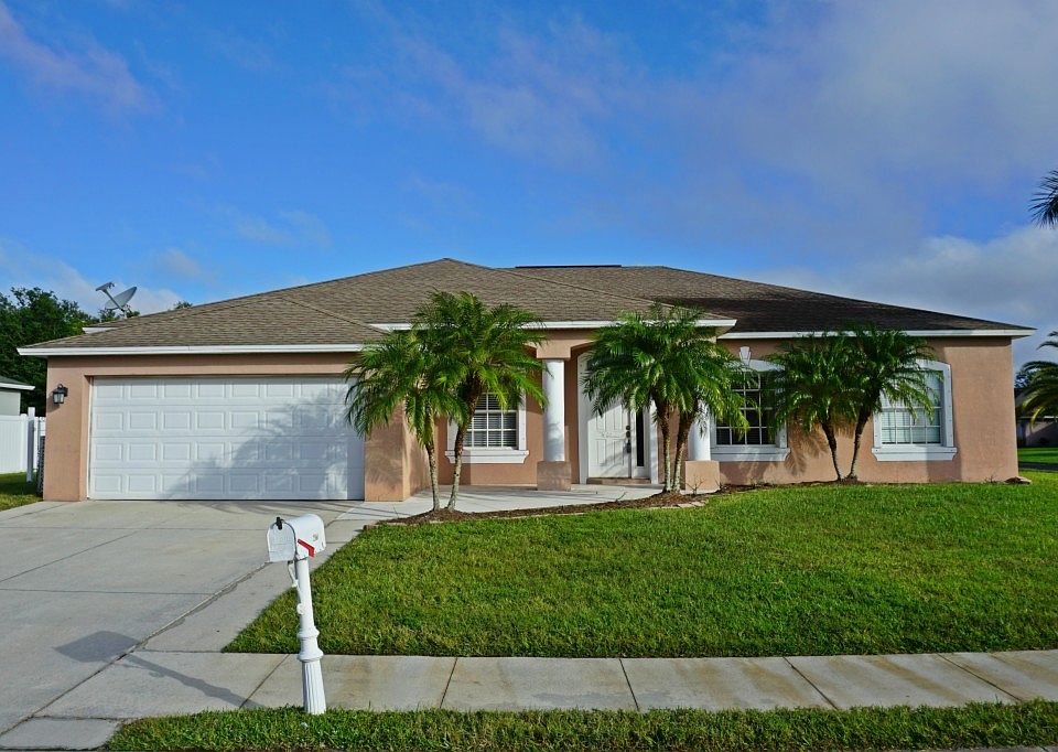 Beautiful Hawk's Preserve Home on a Large Corner Lot with a Fenced Yard. This single story ranch home has over 2,100 square feet of Living Space, 4 Bedrooms, 2 Bathrooms, Family Room, updated Kitchen, formal Living and Dining Room. Features include Wood Laminate Flooring, Tile Flooring on a Diagonal, Pendant Lighting, Added Recessed Lighting, Wood Cabinetry throughout the home, a flex 4th Bedroom / Office, Open Front Porch and Screened Lanai overlooking a Huge Fenced Yard. The Kitchen features Wood Cabinets, Stainless Steel Appliances, Tile Counter Tops, Tile Backsplash, Breakfast Bar and Eat-In Area. The Master Bedroom has Walk-In Closet, Dual Sinks, Makeup Vanity, Garden Tub and Walk-In Shower. Hawk's Preserve is a quaint neighborhood featuring a Community Park, Covered Picnic area and Protected Preserve Zone.